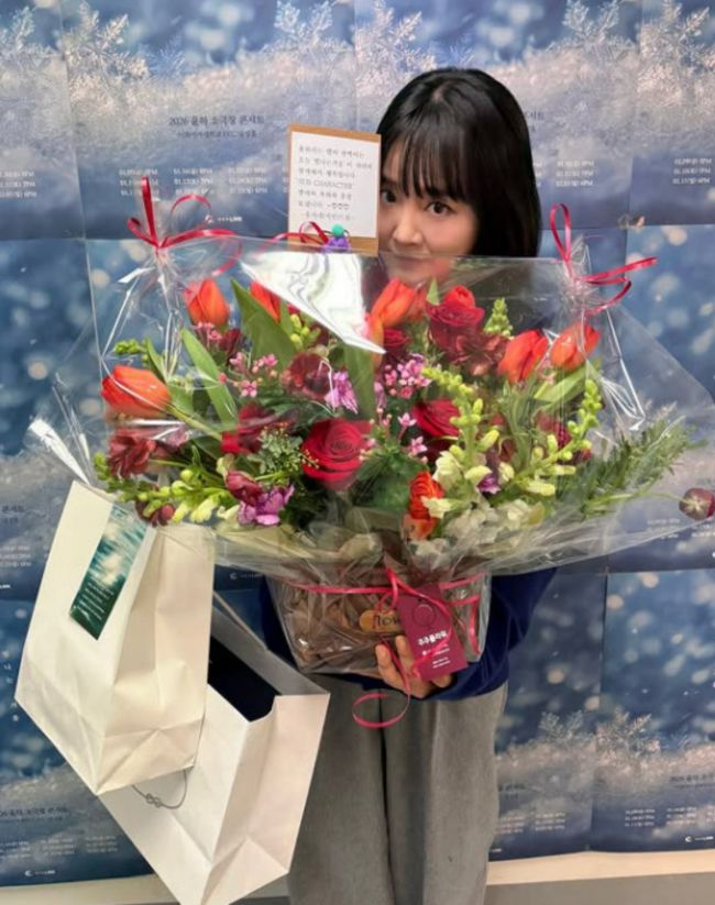 사진=윤하 SNS 가수 윤하가 그룹 에스파 멤버 카리나에게 고마움을 전했다. 윤하는 26일 자신의 인스타그램에 "유가네 지민이가 준 꽃 자랑합니다.."라는 문구와 함께 여러 장의 사진을 게재했다. 공개된 사진들 속에는 윤하가 콘서트를 마친 후 카리나로부터 받은 꽃다발과 선물들을 들고 있는 모습. 윤하는 카리나가 앰배서더로 있는 브랜드들의 제품들을 선물로 받