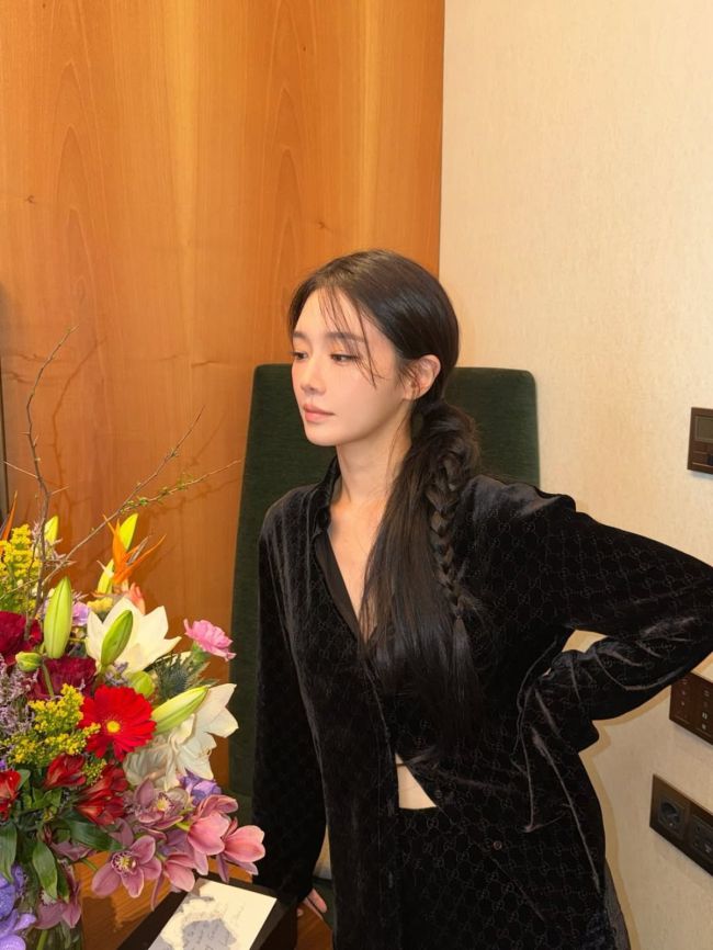 사진 = 박규영 인스타그램 배우 박규영이 훌쭉해진 근황을 공개했다. 최근 박규영은 자신의 인스타그램에 까만 하트 이모지를 담은 명품 브랜드 태그와 함께 사진을 올렸다. 사진 = 박규영 인스타그램 사진 속 박규영은 우드 톤 벽면과 짙은 그린 컬러 의자 앞에서 블랙 톤 의상을 입고 포즈를 취하고 있다. 깊게 파인 브이넥 라인과 은은한 광택이 느껴지는 소재가 분