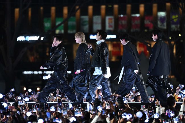 그룹 방탄소년단(BTS)의 컴백 라이브 아리랑(ARIRANG) 광화문 공연일인 21일 서울 종로구 광화문광장에 마련된 무대에서 멤버(RM, 진, 슈가, 제이홉, 지민, 뷔, 정국)들이 화려한 무대를 선보이고 있다. 신태현 기자 holjjak@ 소방청이 BTS(방탄소년단) 광화문 공연에 대전 화재보다 더 소방인력을 투입했다는 오보를 바로 잡았다. 22일 소방
