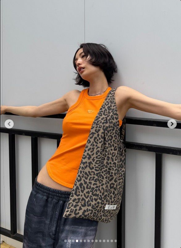 가수 겸 배우 나나가 파격적인 노브라 패션으로 또 한 번 화제를 모았다. 나나는 23일 자신의 인스타그램에 여러 장의 사진을 공개했다. 공개된 사진 속 그는 몸에 밀착되는 주황색 민소매 크롭탑에 와이드 데님 팬츠, 레오파드 패턴 숄더백을 매치한 스트릿 캐주얼룩을 선보였다. 특히 브라를 착용하지 않은 듯한 자연스러운 실루엣과 거침없는 포즈가 눈길을 끌었다.