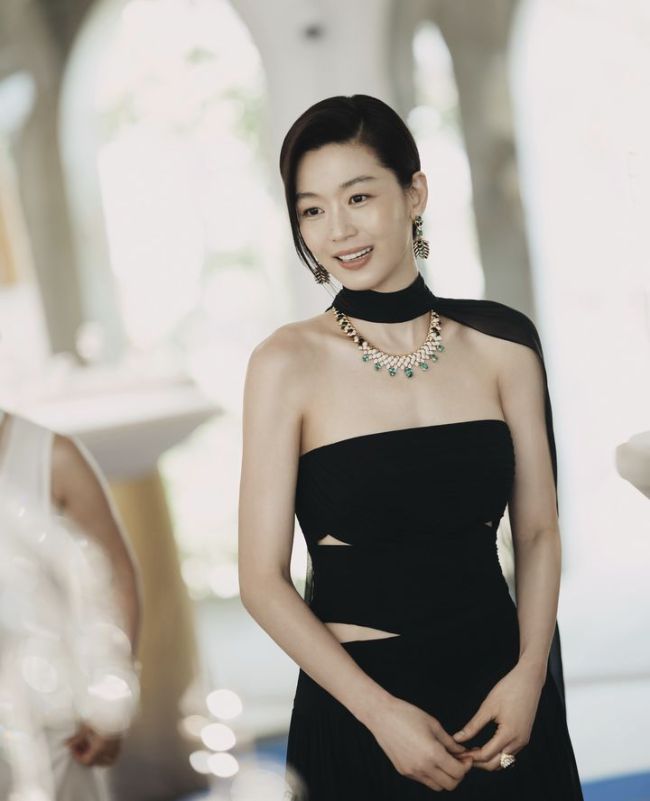 [서울=뉴시스] 전지현. (사진=피아제 인스타그램 캡처) 2025.06.24. photo@newsis.com *재판매 및 DB 금지 [서울=뉴시스] 신효령 기자 = 배우 전지현이 우아한 매력을 뽐냈다. 스위스 명품 시계·주얼리 브랜드 피아제(Piaget)는 지난 23일 공식 인스타그램에 "당당하고 우아한 글로벌 앰버서더 전지현이 바르셀로나에서 열린 '셰이프