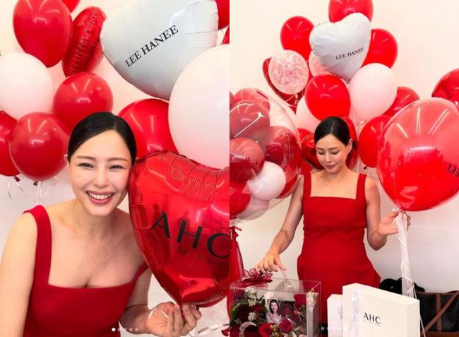 이하늬, 빨간 원피스 입고 만삭 D라인 공개