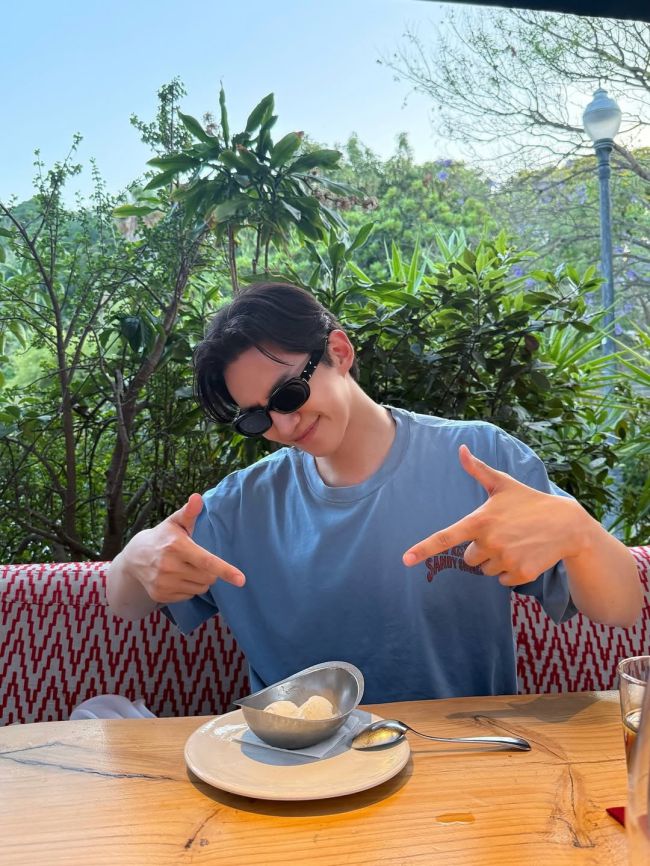 사진 = 이준호 인스타그램 2PM 출신 배우 이준호가 인스타그램을 통해 반칙급 비주얼을 과시했다. 이준호는 최근 자신의 SNS에 태양 이모지와 함께 여러 장의 일상 사진을 공개했다. 여유로운 휴식 속에서 자연스러운 미소를 짓고 있는 모습이 눈길을 끈다. 사진 = 이준호 인스타그램 사진 속 이준호는 블루 색상 반팔 티셔츠를 입고 식당에서 요리를 앞에 두고 환