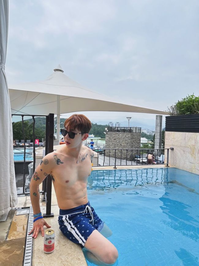 사진 = 조권 인스타그램 2AM 조권이 남성미 넘치는 반전 몸매를 자랑했다. 최근 조권은 자신의 인스타그램에 "DAZEDAYZPARTY"라는 짧은 멘트와 함께 여러 장의 사진을 공개했다. 공개된 사진 속 조권은 파란 수영복 차림으로 서울 남산을 배경 삼아 풀사이드에서 여유로운 시간을 보내고 있다. 복근이 뚜렷이 드러나는 상반신과 어깨, 팔의 타투까지 더해져