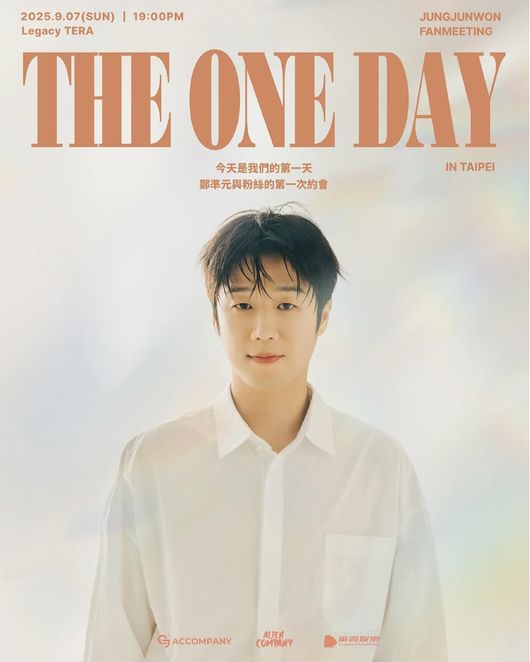 배우 정준원이 대세 행보 꽃길을 걸어가고 있다. 정준원은 오는 9월 7일(현지 시간) 타이베이 Legacy Tera에서 ‘2025 정준원 아시아 팬미팅 [The ONE day in TAIPEI]’를 열고 현지 팬들과의 만남의 장을 마련한다. ‘The ONE day’는 ‘정준원과 팬들이 만나는 그 첫날’이라는 뜻으로, 정준원이 앞으로 팬들과 함께할 다양한 순