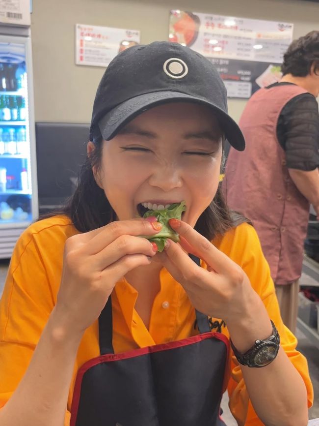 사진 = 장영란 인스타그램 방송인 장영란이 '불금 먹방 여신' 면모를 제대로 뽐냈다. 장영란은 자신의 인스타그램을 통해 "불금 삼겹살은 사랑이여 돼지기름에 볶은 김치는 아 미춰 너무 맛있어"라는 글과 함께 여러 장의 사진을 공개했다. 공개된 사진 속 장영란은 노란색 셔츠와 앞치마, 볼캡을 착용한 채 삼겹살을 직접 굽고 상추쌈을 한가득 싸서 입에 넣으며 환한