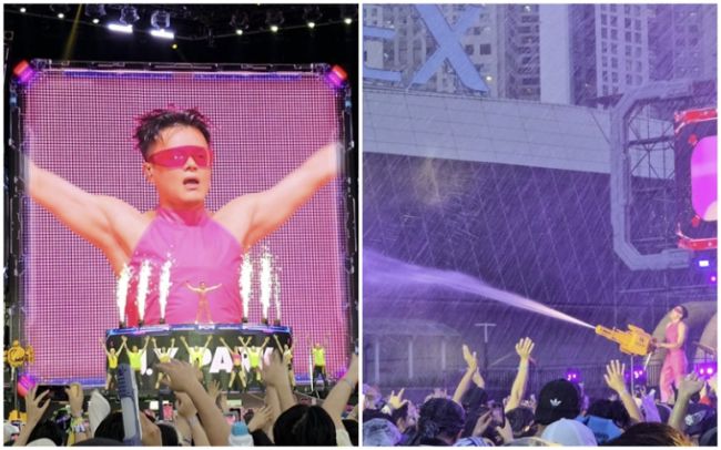 박진영, 핫핑크 비닐바지+홀터넥 '파격 패션'…워터밤 찢었다