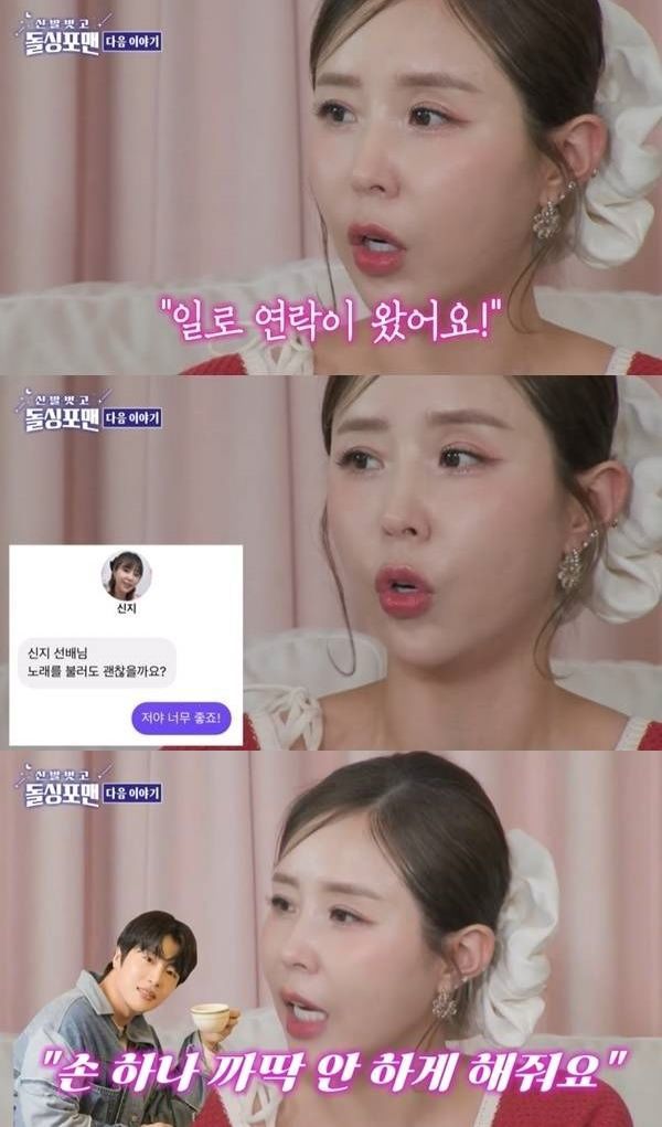 신지 [서울=뉴시스] 최지윤 기자 = 그룹 '코요태' 신지(44·이지선)가 예비신랑 문원(37·박상문)과 첫 만남을 회상했다. 신지는 8일 SBS TV 돌싱포맨' 방송 말미 예고에서 '일곱살 연하의 미남은 어떻게 만났느냐'는 질문에 "(문원이) 일 때문에 DM으로 먼저 연락이 왔다"고 답했다. "'선배님 이 노래 커버해도 될까요?'라고 해 '저는 너무 좋죠