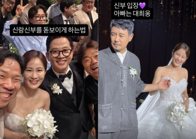 김지민이 돌아가신 아버지 대신 '꼰대희'로 변신한 김대희 손을 잡고 버진로드를 걸었다. /사진=정종철 인스타그램 갈무리 코미디언 김준호 김지민 커플이 1200명 하객 축하 속 화촉을 밝힌 가운데 김지민이 김대희 손을 잡고 버진로드를 걸어 그 배경에 관심이 쏠린다. 김준호 김지민은 지난 13일 서울 강남구 삼성동 그랜드인터컨티넨탈 서울 파르나스에서 결혼식을