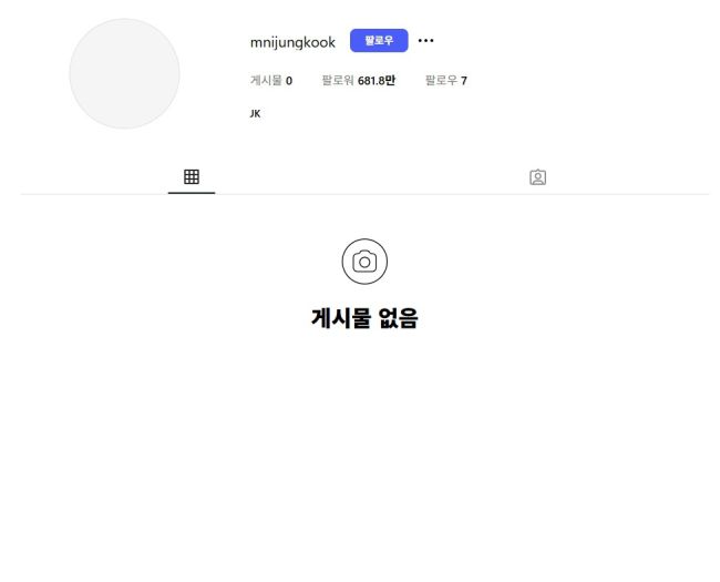정국, 새 SNS 개설 팔로워 680만명·팔로우 7명