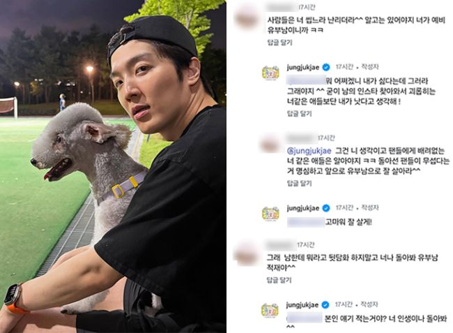 가수 적재가 지난 16일 자신의 인스타그램 게시물에 달린 악성 댓글에 직접 대응했다./사진=적재 인스타그램 가수 적재가 악성 댓글에 직접 대응했다. 적재는 지난 16일 자신의 인스타그램에 예비 신부 허송연 반려견 '우주'와 함께 한 일상을 공유했다. 적재 게시물에 누리꾼들은 "우주 왕 귀엽다" "진정한 남친 짤" "(남의) 남짤" "행복한 적재님" 등 댓글