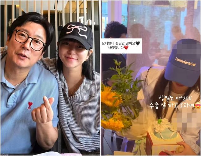 개그맨 이수근의 아내 박지연이 수술을 앞두고 따뜻한 응원을 받은 근황을 공개했다. 박지연은 최근 자신의 인스타그램에 "생일도 아닌데 수술 잘 하고 오라며"라는 문구와 함께 한 장의 사진을 게재했다. 사진 속 박지연은 캐주얼한 복장에 모자를 눌러쓴 채, 환한 미소로 꽃다발과 케이크 선물을 들고 있다. 특히 ‘우리 요니언니 꽃길만 걸어요. 사랑합니다’라는 메시