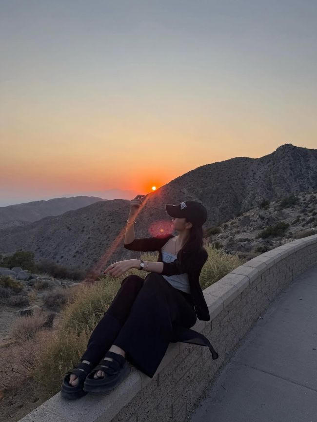 사진 = 지수 인스타그램 블랙핑크 지수가 민낯에도 치명적인 분위기를 뽐냈다. 지수는 개인 인스타그램에 여러 장의 사진을 게재했다. 붉게 물든 산 능선 위에서 해가 떠오르는 순간을 배경으로 한 이 사진은 마치 한 편의 예술 작품처럼 완성도가 높은 모습이다. 사진 속 지수는 검은 야구모자에 블랙 가디건, 흰 슬리브리스 톱과 롱스커트를 매치해 무심한 듯 시크한
