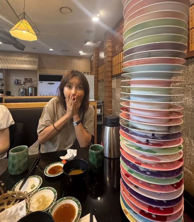 사진 = 신애라 인스타그램 신애라가 엄청난 접시탑과 함께 놀란 표정의 사진을 공개하며 일상 속 '생활력 만렙' 면모를 자랑했다. 신애라는 자신의 인스타그램에 "스시좋아하시는 아버지와 아이들데리고 어제 잘먹었으니 오늘도 열심히 일해봐야죠^^"라는 글과 함께 사진 한 장을 올렸다. 공개된 사진 속 신애라는 스시 접시가 하늘을 찌를 듯 쌓인 테이블 앞에서 두 손
