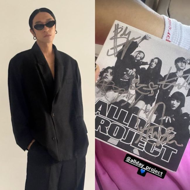 사진=빽가 SNS 그룹 코요태 멤버 빽가가 올데이 프로젝트와 만났다. 빽가는 지난 22일 자신의 인스타그램 스토리에 "너무 멋지고 반가운 후배들"이라는 문구와 함께 두 장의 사진을 순차적으로 게재했다. 공개된 사진들 속에는 데뷔 갓 30일 된 혼성그룹 올데이 프로젝트가 빽가에게 사인 CD를 건넨 모습. CD에는 "최장수 혼성그룹인 선배님들과 함께 촬영할 수