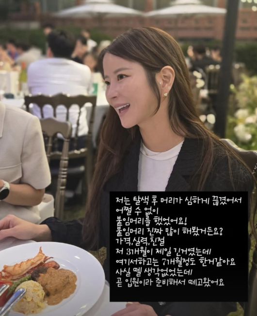 개그맨 이수근의 아내이자 스타일리스트 출신 인플루언서 박지연이 입원을 앞두고 붙임머리를 뗐다고 밝혔다. 박지연은 26일 자신의 인스타그램에 긴 머리 미모를 뽐내는 사진과 함께 “저는 탈색 후 머리가 심하게 끊겨서 어쩔 수 없이 붙임머리를 했어요”라는 글을 올리며 현실적인 뷰티 고민을 공유했다. 이어 “붙임머리 진짜 많이 해봤거든요? 가격, 실력, 친절… 저