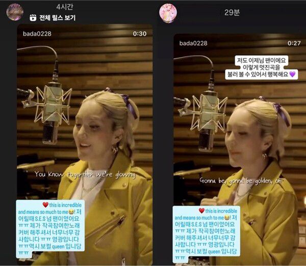 바다(BADA) 인스타그램 계정, 이재(EJAE) 인스타그램 계정 K-POP 1세대 걸그룹 SES 바다가 전 세계적으로 선풍적인 인기를 모으고 있는 넷플릭스 애니메이션 'K-POP 데몬 헌터스'의 OST 'GOLDEN'을 커버해 큰 화제가 되고 있다. SES 바다의 'GOLDEN' 커버영상은 업로드 하루만에 유튜브 인기 급상승 음악차트 2위에 오르는 등 기