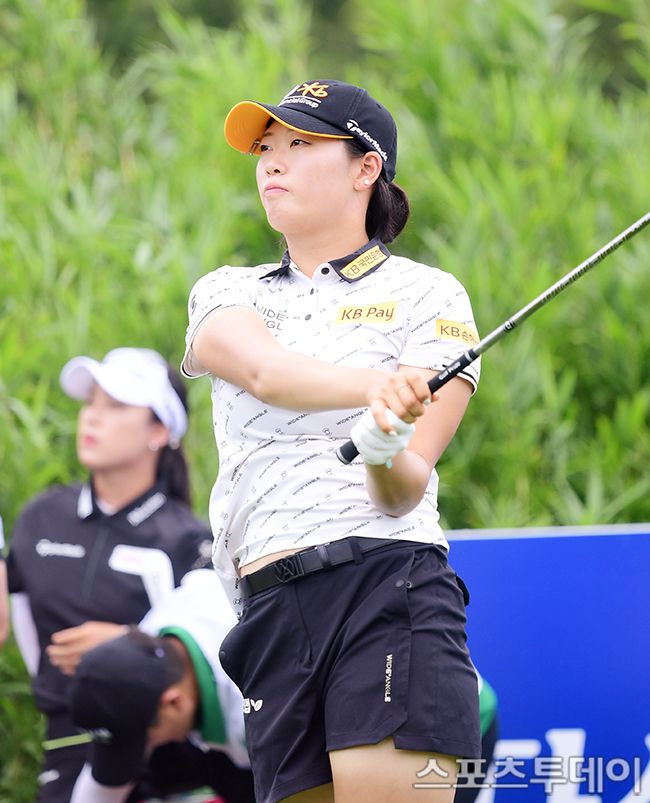 2025 KLPGA 투어 제주 삼다수 마스터(총상금 10억 원, 우승상금 1억8000만 원) 2라운드 경기가 7일 제주도 서귀포시 사이프러스골프&리조트(파72 / 6586야드)에서 열렸다. 방신실이 5번홀 티샷을 하고 있다. 2025.08.08. [스포츠투데이 권광일 기자 sports@stoo.com]
