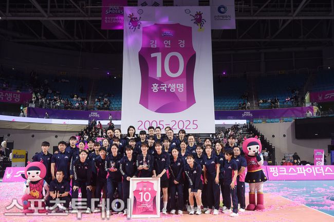 진에어 2025-2026 V-리그 여자부 개막전 흥국생명-정관장 경기가 18일 오후 인천 삼산월드체육관에 열렸다. 이날 김연경 선수가 경기 후 열린 김연경 은퇴식과 영구 결번식에 참석해 자리를 빛냈다. 2025.10.18 [스포츠투데이 안성후 기자 sports@stoo.com]