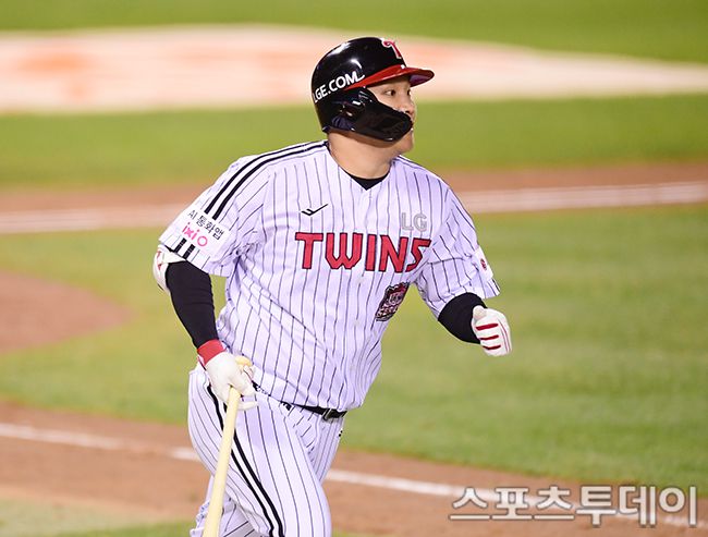 2025 신한은행 SOL Bank KBO리그 한국시리즈 2차전 한화 이글스와 LG 트윈스의 경기가 27일 서울 잠실야구장에서 열렸다. LG 문보경이 4회말 2사 만루에서 2루타를 치고 있다. 2025.10.27. [스포츠투데이 권광일 기자 sports@stoo.com]