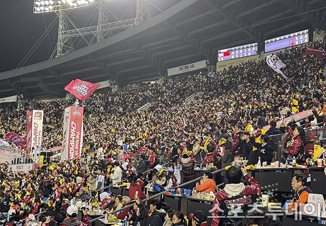 2025 신한은행 SOL Bank KBO리그 한국시리즈 2차전 한화 이글스와 LG 트윈스의 경기가 27일 서울 잠실야구장에서 열린다. LG 응원단이 열정적인 응원을 펼치고 있다. 2025.10.27. [스포츠투데이 권광일 기자 sports@stoo.com]