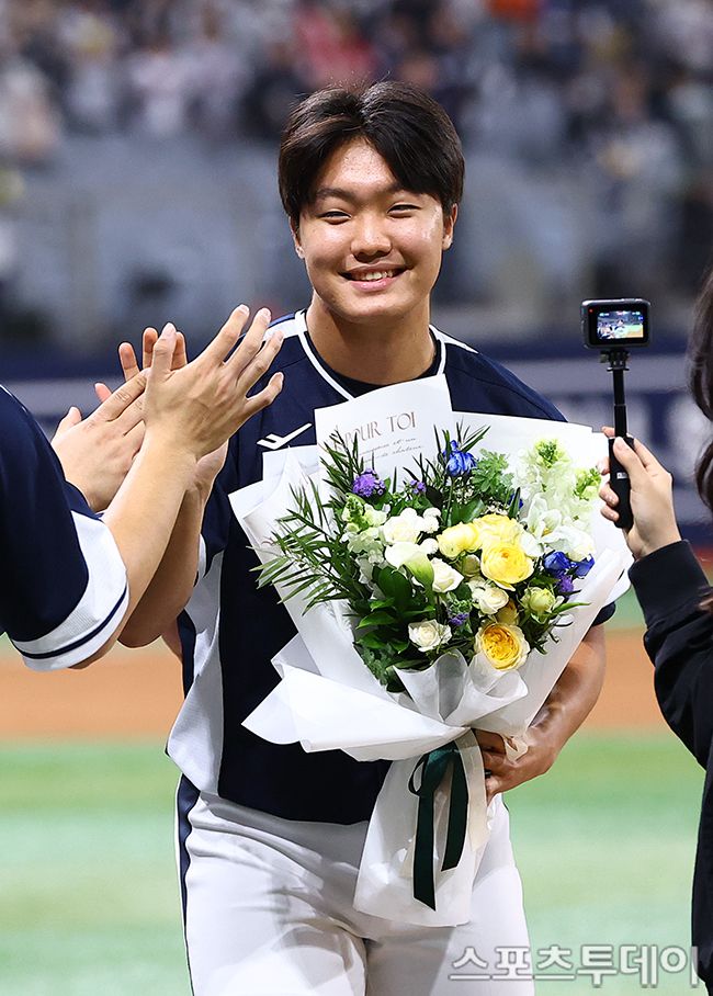 9일 서울 고척스카이돔에서 열린 '2025 NAVER K-BASEBALL SERIES' 대한민국과 체코의 평가전, 11-1로 대한민국이 승리했다. 정우주가 데일리 MVP를 받고 있다. 2025.11.09. [스포츠투데이 팽현준 기자 sports@stoo.com]