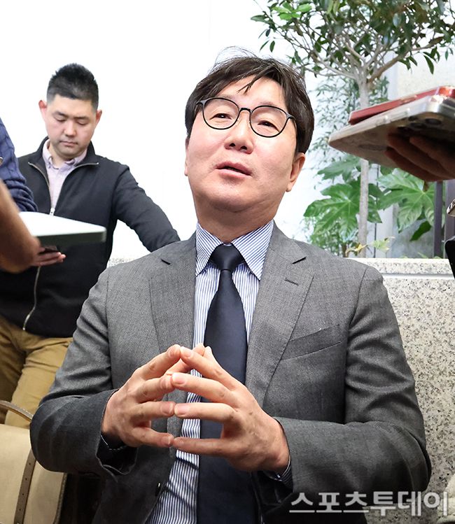 야구 대표팀이 도쿄돔에서 진행되는 일본과의 평가전을 위해 12일 오후 김포국제공항을 통해 일본으로 출국했다. 류진현 대표팀 감독이 출국 전 인터뷰를 하고 있다. 2025.11.12. [스포츠투데이 권광일 기자 sports@stoo.com]