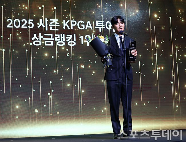 12일 서울 서대문구 스위스 그랜드 호텔에서 열린 2025 KPGA 대상 시상식에서 옥태훈이 상금랭킹 1위를 차지하고 있다. 2025.11.12. [스포츠투데이 팽현준 기자 sports@stoo.com]