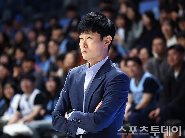 13일 경기도 고양체육관에서 열린 2025-2025 프로농구 고양 소노와 대구 한국가스공사의 경기, 한국가스공사 강혁 감독이 선수들을 보고 있다. 2025.11.13. [스포츠투데이 팽현준 기자 sports@stoo.com]