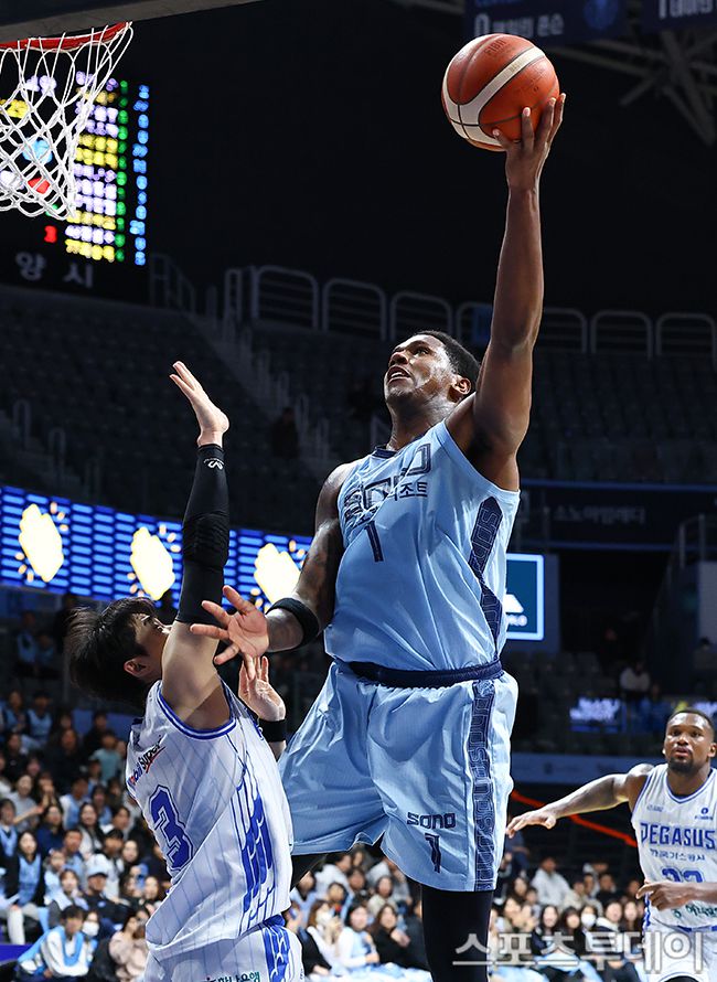 13일 경기도 고양체육관에서 열린 2025-2026 프로농구 고양 소노와 대구 한국가스공사의 경기, 소노 나이트가 골을 넣고 있다. 2025.11.13. [스포츠투데이 팽현준 기자 sports@stoo.com]