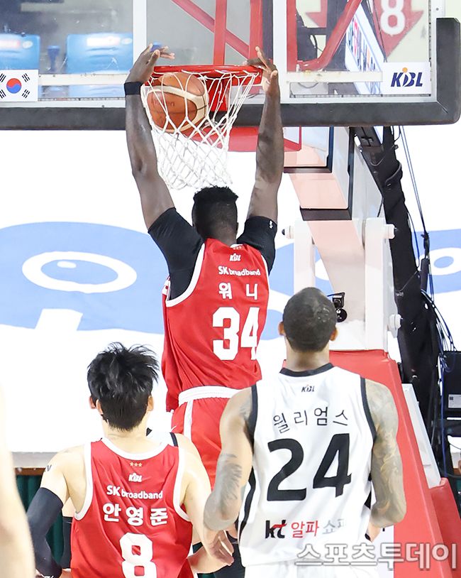 2025-2026 LG전자 프로농구 서울SK와 수원KT의 경기가 17일 서울학생체육관에서 열렸다. 서울SK 자밀 워니가 4쿼터 투핸드 덩크를 하고 있다. 2025.11.17. [스포츠투데이 권광일 기자 sports@stoo.com]