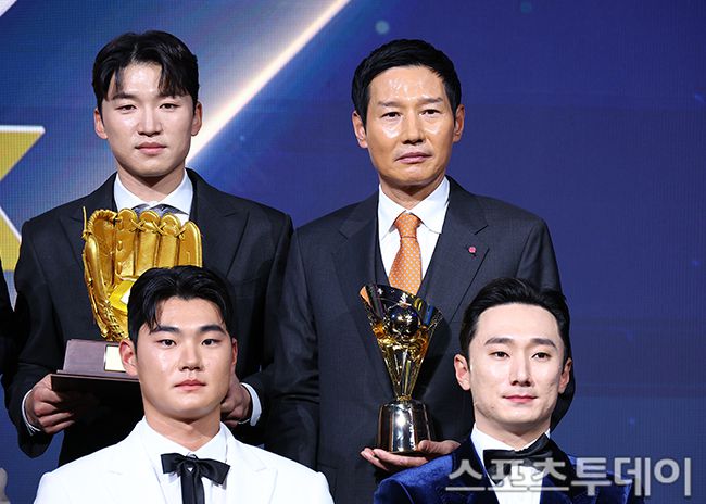 9일 서울 잠실 롯데호텔월드에서 열린 2025 KBO 골든글러브 시상식에서 수상자들이 기념촬영을 하고 있다. 2025.12.09. [스포츠투데이 팽현준 기자 sports@stoo.com]