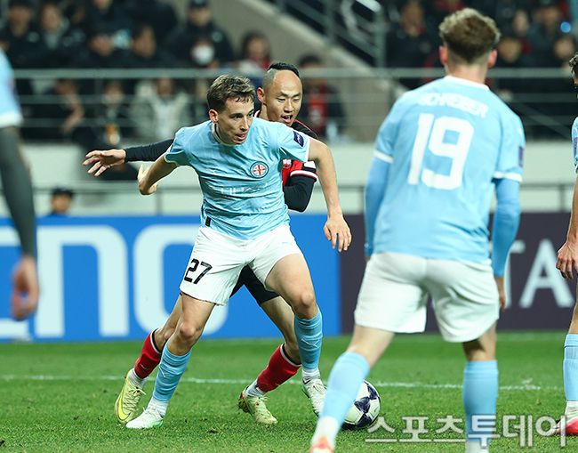 10일 서울월드컵경기장에서 열린 AFC 챔피언스리그 엘리트(ACLE)리그 스테이지 6차전 FC서울과 멜버른 시티의 경기, FC서울 문선민이 공을 뺐기고 있다. 2025.12.10. [스포츠투데이 팽현준 기자 sports@stoo.com]