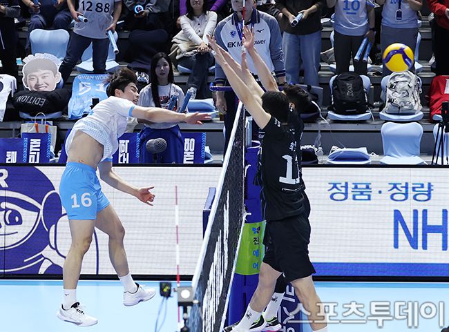2025-2026 진에어 V-리그 남자부 대한항공-현대캐피탈 경기가 16일 인천 계양체육관에서 열렸다. 대한항공이 현대캐피탈을 상대로 세트스코어 3-0 승리를 하고 있다. 2025.12.16. [스포츠투데이 권광일 기자 sports@stoo.com]