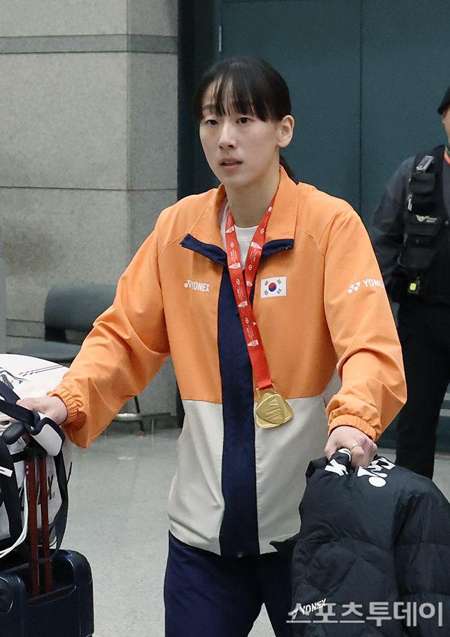 배드민턴 여자 복식 이소희가 22일 오후 인천국제공항을 통해 귀국 하고 있다. 2025.12.22. [스포츠투데이 권광일 기자 sports@stoo.com]