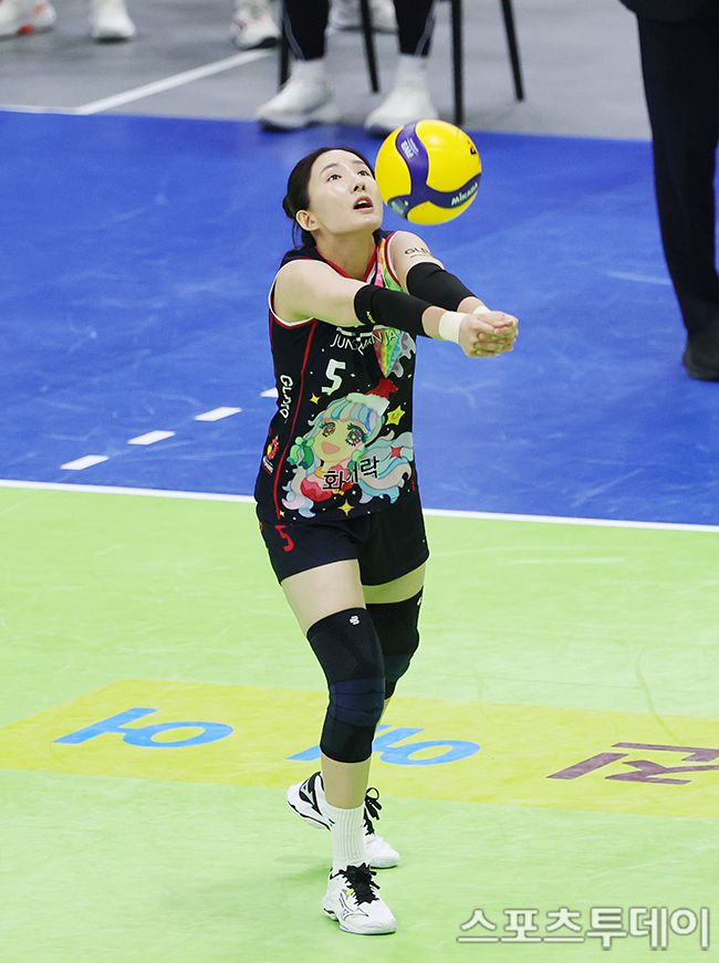 2025-2026 진에어 V-리그 여자부 현대건설과 정관장의 경기가 25일 경기도 수원시 수원체육관에서 열렸다. 정관장 노란이 리시브를 올리고 있다. 2025.12.25. [스포츠투데이 권광일 기자 sports@stoo.com]