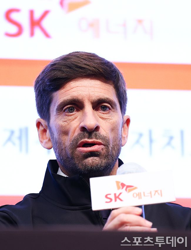 세르지우 코스타 감독이 29일 서울 강서구 메이필드호텔에서 열린 제주 SK FC 감독 부임 기자회견에서 인사말을 하고 있다. 2025.12.29. [스포츠투데이 팽현준 기자 sports@stoo.com]