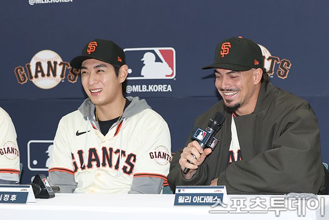 샌프란시스코 이정후, 윌리 아다메스가 7일 경기도 이천시 이천LG챔피언스파크에서 열린 샌프란시스 기자회견 및 클리닉에 참석하고 있다. 2026.01.07. [스포츠투데이 권광일 기자 sports@stoo.com]