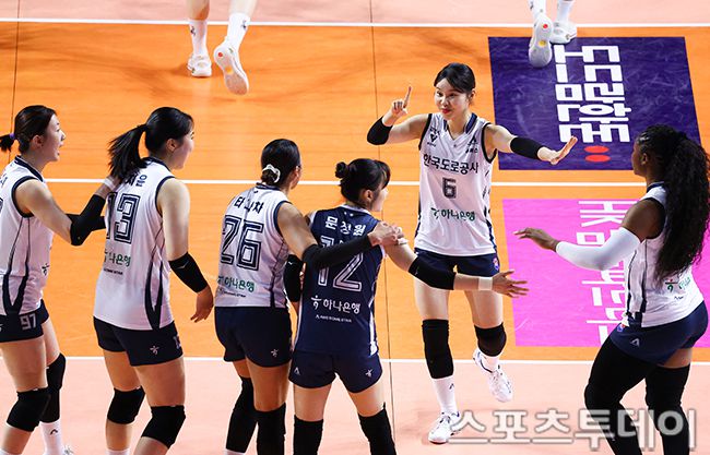 14일 인천 삼산월드체육관에서 열린 2025-2026 V리그 여자부 흥국생명과 한국도로공사의 경기, 한국도로공사가 득점하고 있다. 2026.01.14. [스포츠투데이 팽현준 기자 sports@stoo.com]