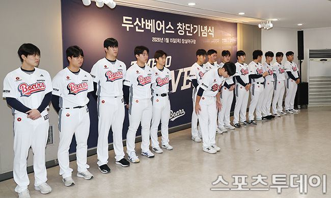 15일 서울 잠실야구장에서 열린 두산 베어스 시무식에서 2026년 신인 선수들이 신년 인사를 하고 있다. 2026.01.15. [스포츠투데이 권광일 기자 sports@stoo.com]