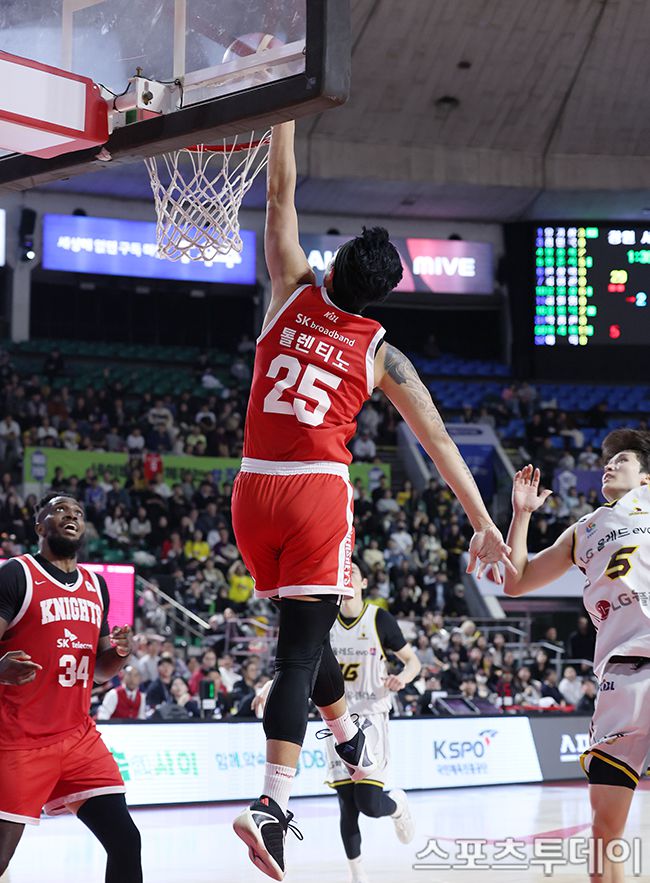 2025-2026 LG전자 프로농구 서울SK와 창원LG의 경기가 15일 서울학생체육관에서 열렸다. 서울SK 알빈 톨렌티노가 덩크를 하고 있다. 2026.01.15. [스포츠투데이 권광일 기자 sports@stoo.com]