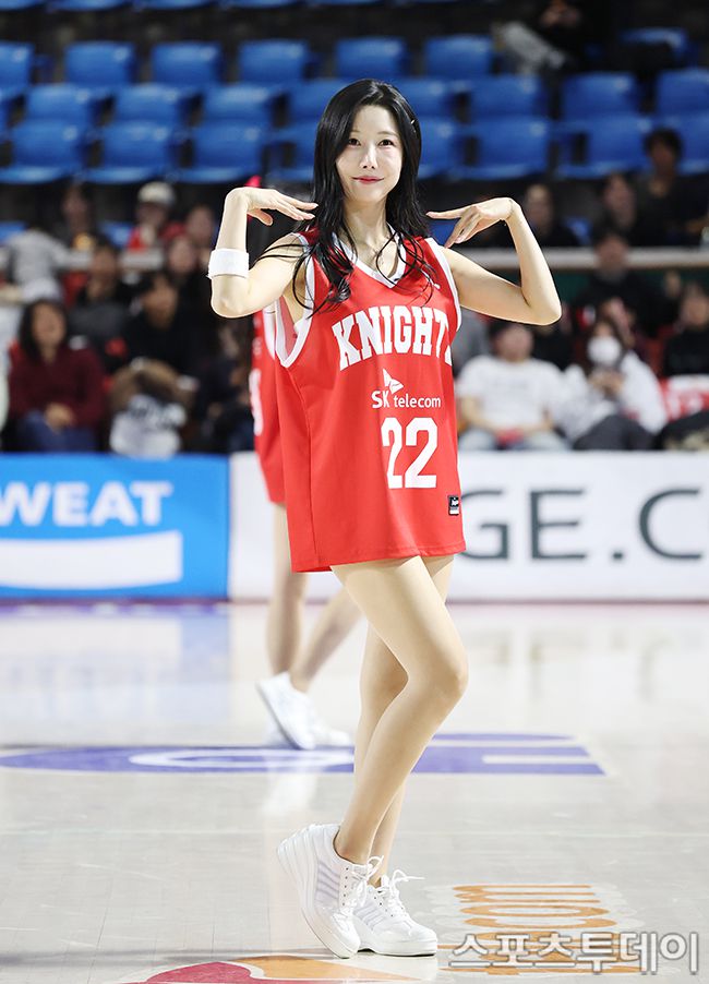 2025-2026 LG전자 프로농구 서울SK와 창원LG의 경기가 15일 서울학생체육관에서 열렸다. 치어리더 류현주가 신나는 응원을 선보이고 있다. 2026.01.15. [스포츠투데이 권광일 기자 sports@stoo.com]