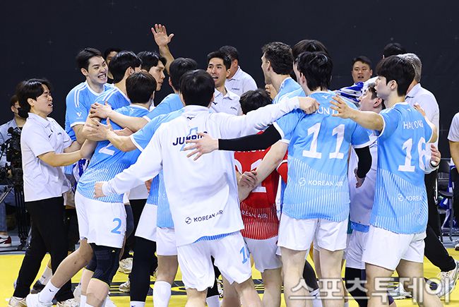 16일 경기도 의정부 경민대학교 체육관에서 열린 V리그 남자부 KB손해보험과 대한항공의 경기, 세트스코어 3-1로 대한항공이 승리하고 있다. 2026.01.16. [스포츠투데이 팽현준 기자 sports@stoo.com]