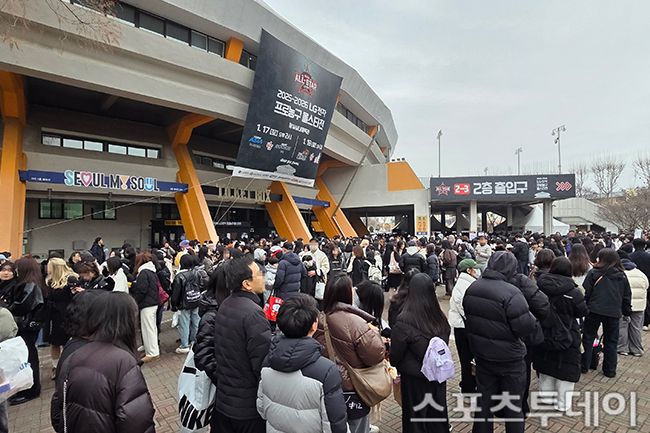 18일 서울 잠실실내체육관에서 열리는 2025-2026 프로농구 올스타전을 보기 위해 팬들이 입장을 기다리고 있다. 2026.01.18. [스포츠투데이 팽현준 기자 sports@stoo.com]