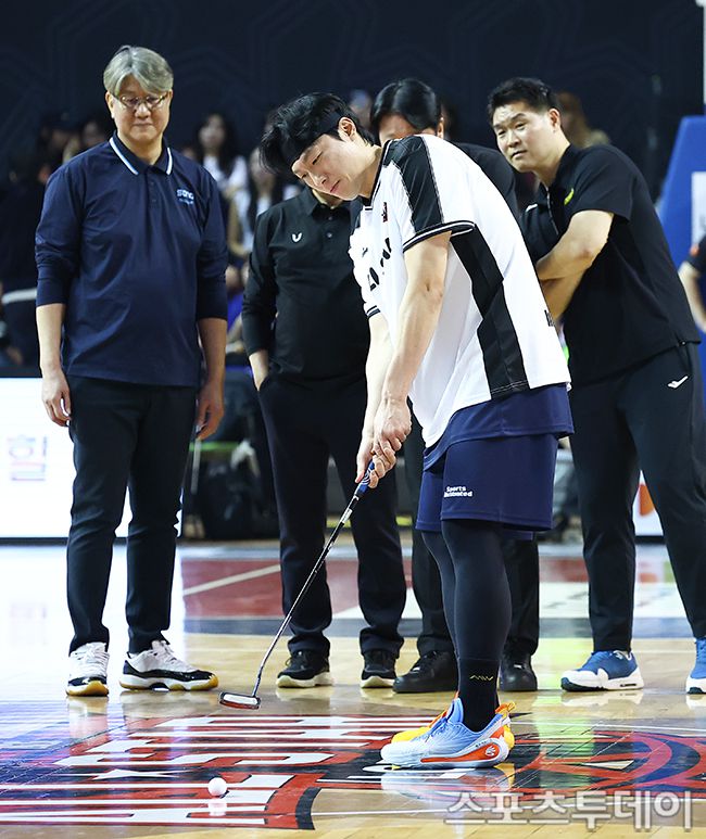 18일 서울 잠실실내체육관에서 열린 2025-2026 프로농구 올스타전에서 이승현이 퍼팅게임을 하고 있다. 2026.01.18. [스포츠투데이 팽현준 기자 sports@stoo.com]