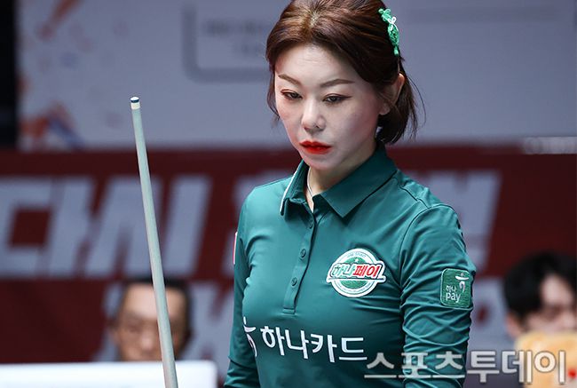 19일 경기도 고양 킨텍스 PBA스타디움에서 열린 '웰컴저축은행 PBA 팀리그 2025-2026' SK렌터카와 하나카드의 챔피언결정전 1차전, 하나카드 김가영이 여자복식에서 공격하고 있다. 2026.01.19. [스포츠투데이 팽현준 기자 sports@stoo.com]