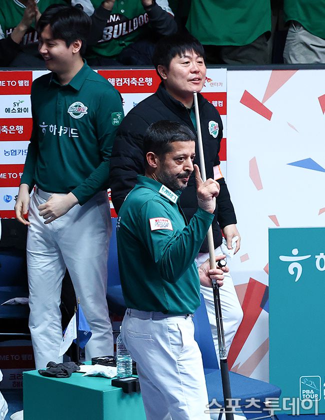 19일 경기도 고양 킨텍스 PBA스타디움에서 열린 '웰컴저축은행 PBA 팀리그 2025-2026' SK렌터카와 하나카드의 챔피언결정전 1차전, 하나카드 초클루가 남자단식에서 에디 레펀스를 상대로 역전승을 거두고 있다. 2026.01.19. [스포츠투데이 팽현준 기자 sports@stoo.com]
