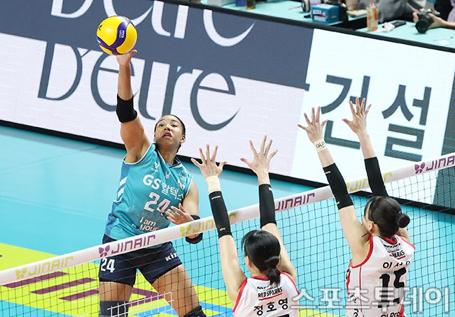 2025-2026 진에어 V-리그 여자부 GS칼텍스-정관장 경기가 20일 서울 장충체육관에서 열렸다. GS칼텍스 레이나가 스파이크를 때리고 있다. 2026.01.20. [스포츠투데이 권광일 기자 sports@stoo.com]