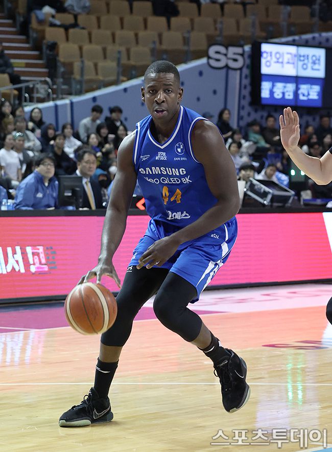 2025-2026 LG전자 프로농구 서울삼성와 대구한국가스공사의 경기가 22일 서울 잠실실내체육관에서 열렸다. 삼성 앤드류 니콜슨이 골밑으로 드리블 하고 있다. 2026.01.22. [스포츠투데이 권광일 기자 sports@stoo.com]