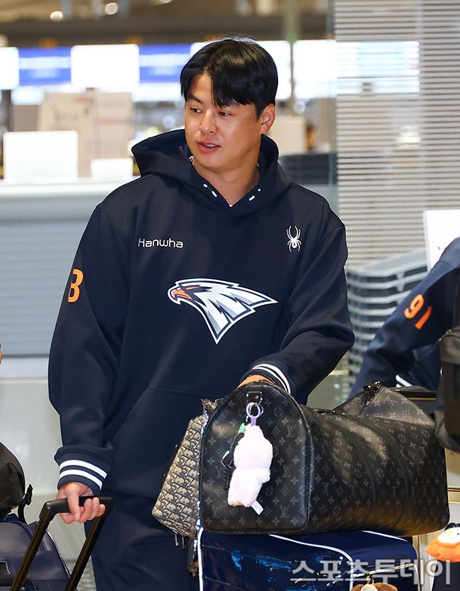 한화 이글스 노시환이 2026 시즌 준비 스프링캠프를 위해 23일 인천국제공항에서 출국을 준비하고 있다. 2026.01.23. [스포츠투데이 팽현준 기자 sports@stoo.com]